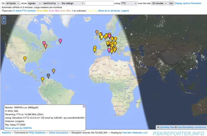 Vários contatos FT2 já estão sendo rastreados pelo PSKReporter; este é o link para os QSOs FT2.