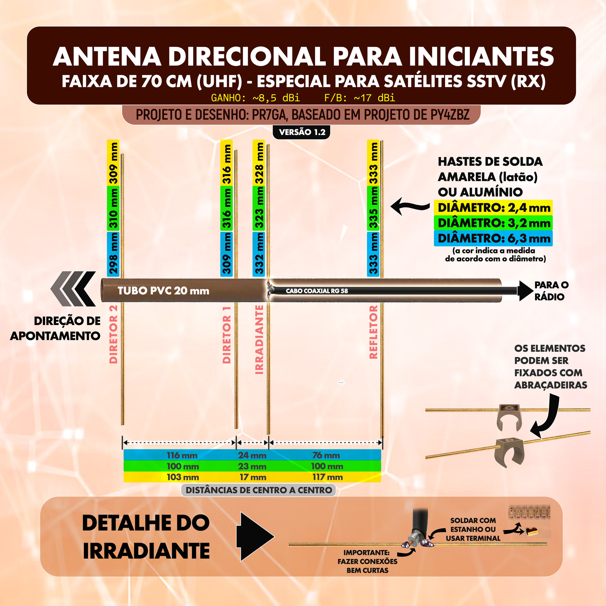Rádio e antena: Como trata-se de um satélite de baixa potência, será necessária a utilização de uma antena direcional para que os sinais possam ser captados a contento. Sugerimos a utilização de uma antena direcional simples como esta: