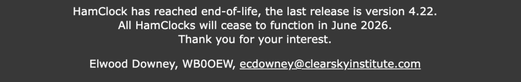 Elwood Downey, WB0OEW, o desenvolvedor do software de rádio amador HamClock, faleceu em 29 de janeiro de 2026. De acordo com seu site, o programa deixará de funcionar em junho de 2026.